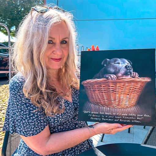 I bought this Pet Memorial Portrait Painting for my colleague who had recently lost her pet dog, Willow. She was so happy to receive the painting that she almost broke into tears in his memory. I am sure she will cherish this Handmade Painting for life. Thank you, PaintingShack.